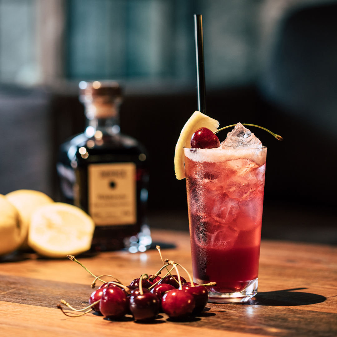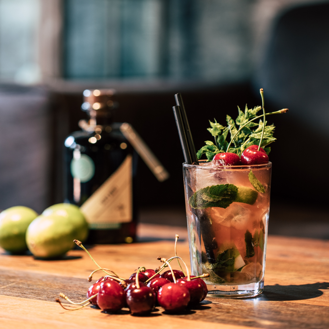 Kirschen: Einige frische oder eingelegte Kirschen können als dekorative Garnitur oder sogar als süße Überraschung am Boden des Glases dienen. Kirschen sind besonders für Cocktails wie den Manhattan oder den Old Fashioned beliebt.