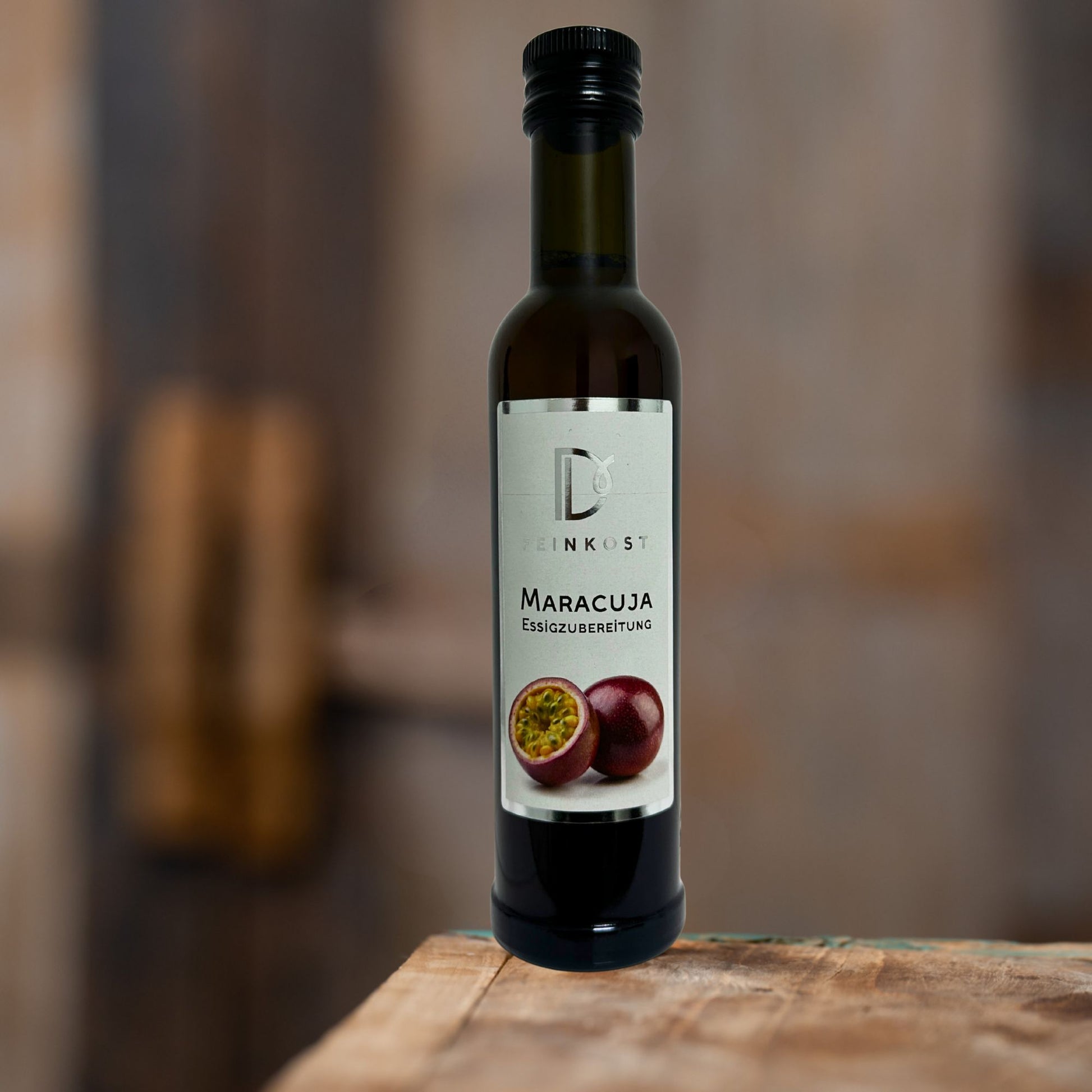 Exotisch. Lebendig. Überraschend vielseitig: Unsere Maracuja Essig Zubereitung bringt tropische Frische und feine Säure in perfekte Balance. Die intensive Fruchtigkeit der Maracuja trifft auf eine angenehm milde Essignote und sorgt für ein lebendiges, klares Aromenspiel mit exotischem Charakter.